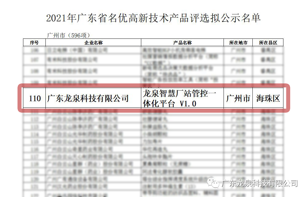 喜訊!熱烈祝賀我司“龍泉智慧廠站管控一體化平臺(tái)V1.0“被認(rèn)定為廣東省名優(yōu)高新技術(shù)產(chǎn)品